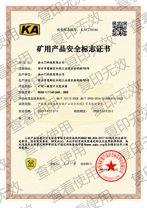 KKSG-25/1140(660、380)矿用产品安全标志证书